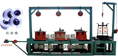 我公司生产有连罐拔丝机, 此机功率大,效率高,它能把直径大的钢筋立即拉成你所需要的规格,产量高、节能、操作方便。你所需要的直径越细,本机的组合数就越多。即:单联、双联、三联、四联等。组合越多功率越大,价位越高.